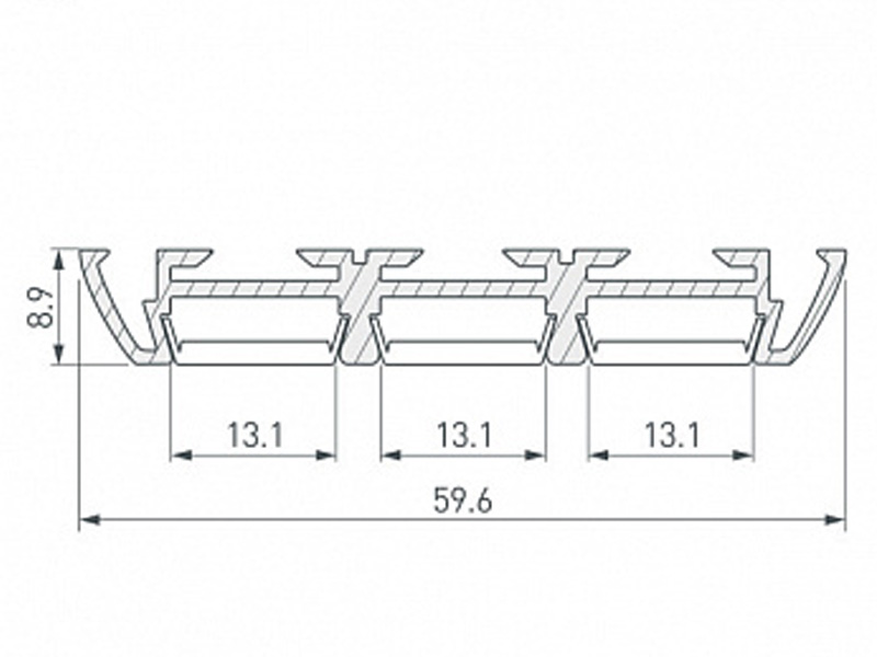 Габаритные размеры (L×W×H): 2000 x 59,6 x 8,9 мм. Ширина площадки для ленты 13,1 мм.
