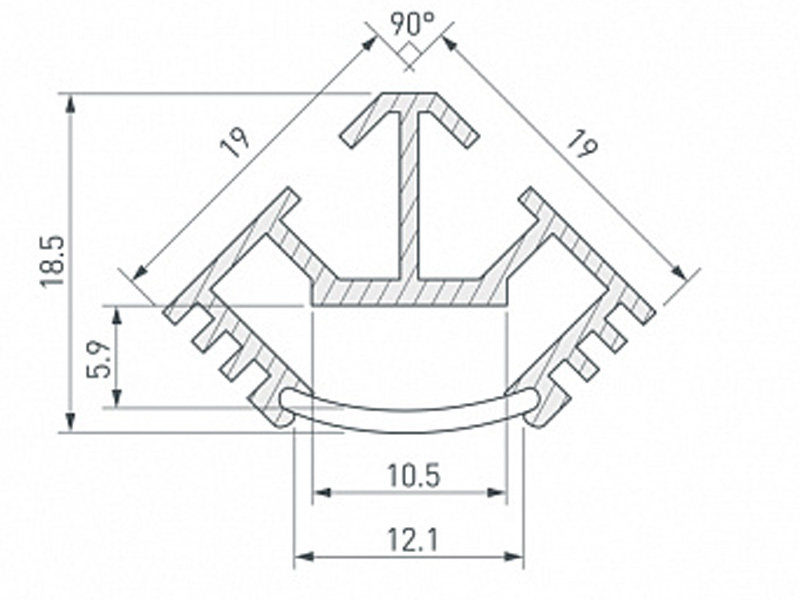 Габаритные размеры (L×W×H): 2000 x 19 x 19 мм. Ширина площадки для ленты 10,5 мм.