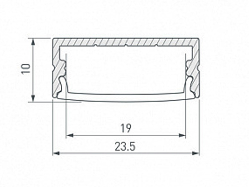 Габаритные размеры (L×W×H): 2000 x 23,5 x 10 мм. Ширина площадки для ленты 19 мм.