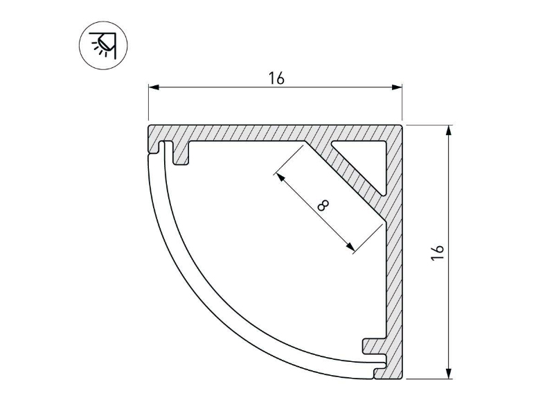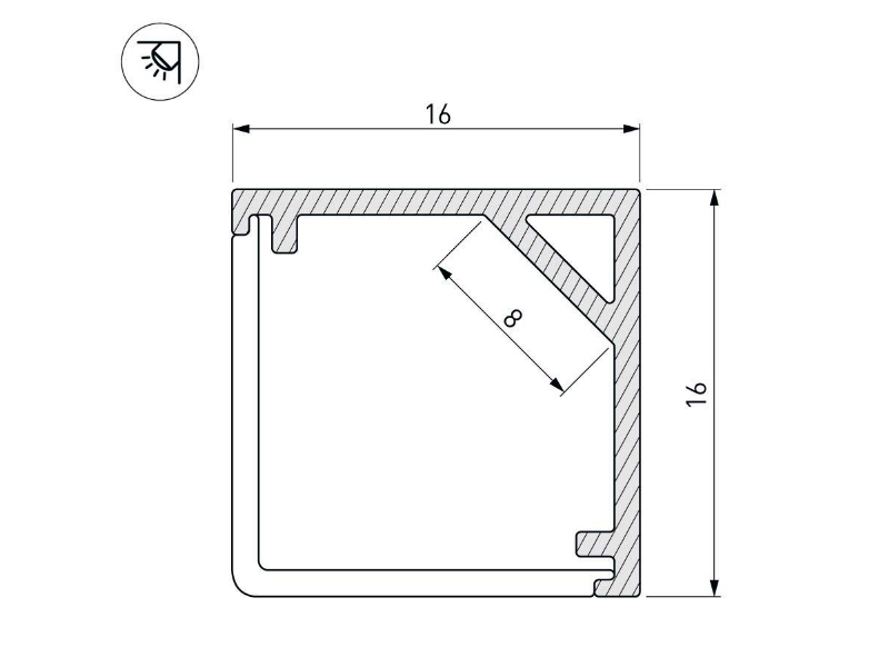 Габаритные размеры (L×W×H): 2000 x 16 x 16 мм. Ширина площадки для ленты 8 мм.