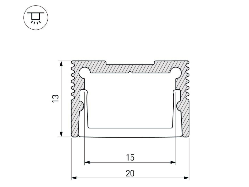 Габаритные размеры (L×W×H): 2000 x 20 x 13 мм. Ширина площадки для ленты 15 мм.