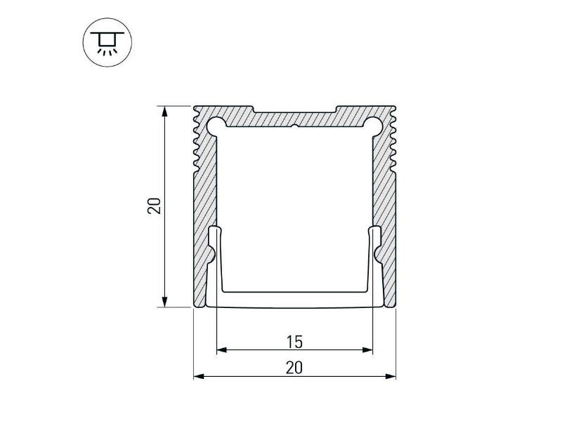 Габаритные размеры (L×W×H): 2000 x 20 x 20 мм. Ширина площадки для ленты 15 мм.
