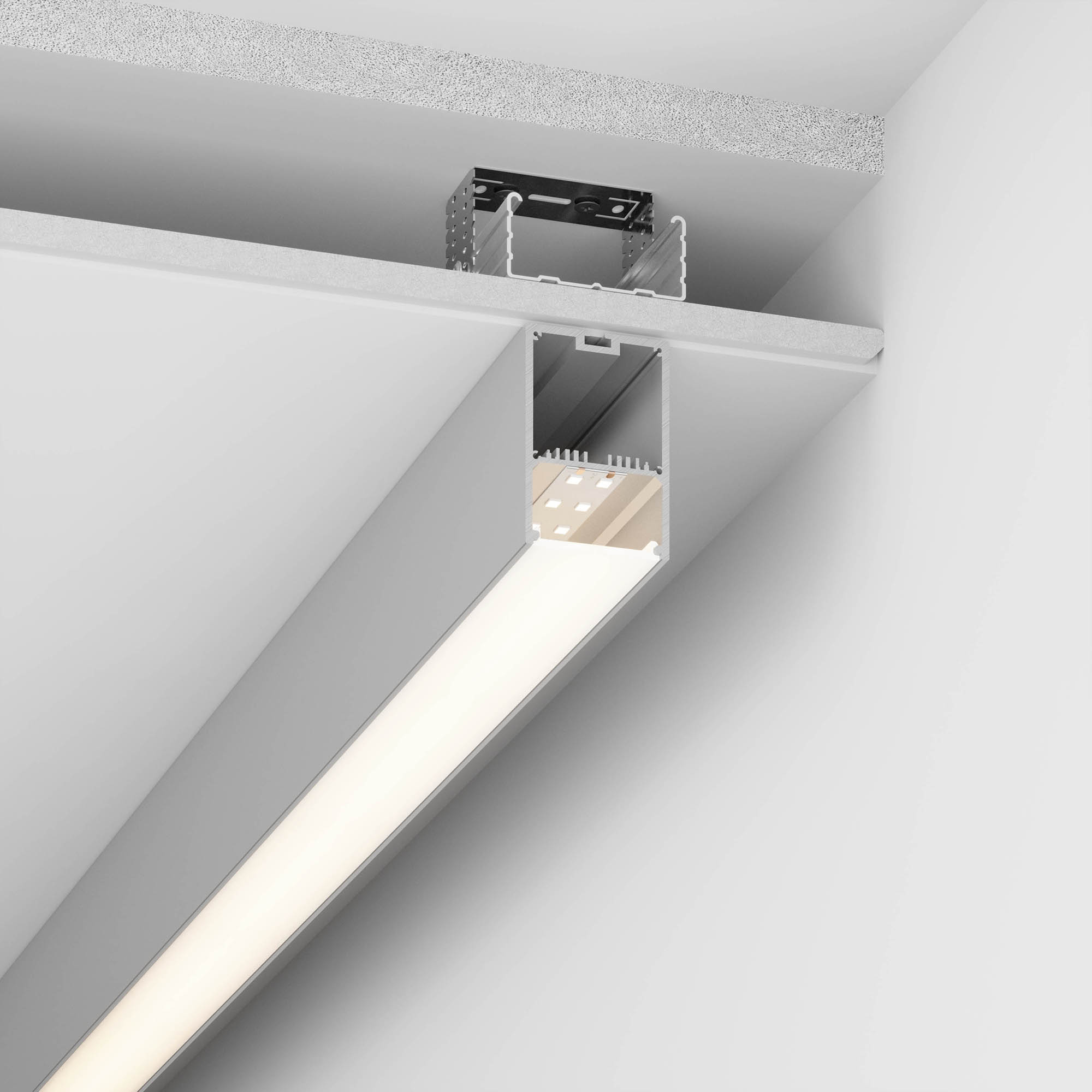 Габаритные размеры (L×W×H): 2000 x 49 x 70 мм. Ширина площадки для ленты 37 мм. Отсек для БП 33 х 45 мм.