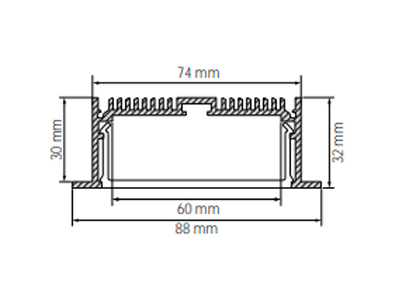 Габаритные размеры (L×W×H): 2000 x 88 x 32 мм, паз для установки 74 мм.