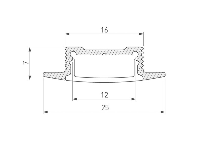 Габаритные размеры (L×W×H): 2000 x 25 x 7 мм, паз для установки 16 мм.
