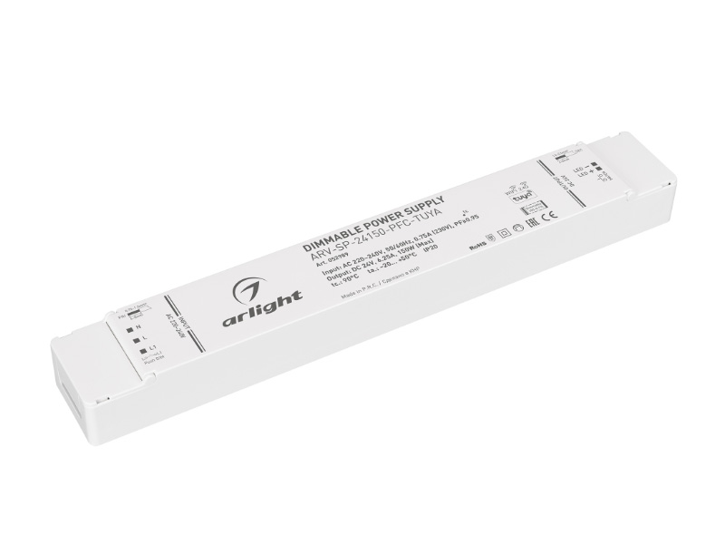 Управляемый по WiFi и RF источник напряжения серии ARV-SP с гальванической развязкой предназначен для питания различных типов светильников и светодиодов. Позволяет сделать управление с помощью платформы TUYA, совместим с АЛИСА от Яндекс. Устройство предназначено для работы внутри помещений, имеет скромные габариты, что позволяет встраивать его в корпус светильника.
