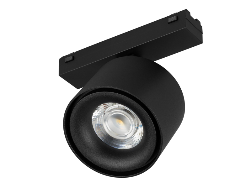 Фигурный корпус из алюминия окрашен в черный цвет высококачественной порошковой краской и гармонично вписывается в различные типы интерьеров. Светильник быстро и надежно крепится на узкий трек серии MAG-VIBE, размерами 25 х 7мм, с помощью магнитов и механических фиксаторов. Корпус светильника поворачивается вокруг своей оси на 350° и отклоняется на 90° по вертикали относительно потолка, что позволяет мгновенно менять и регулировать направление светового луча. Узкий угол излучения 24° подойдет для организации направленного освещения. Имеет защиту от пыли IP20 для применения внутри помещений, где нет контакта с водой или другими жидкостями. Минимальный коэффициент пульсации (менее 1%) гарантирует зрительный комфорт без мерцания. Расширенная гарантия до 5 лет указывает на надежность и длительную работоспособность. Управление по протоколу DALI позволяет менять яркость свечения и цветовую температуру от теплого до холодного оттенка, что создает биодинамическое освещение в помещениях, улучшающее комфорт, настроение, продуктивность, а также активность в течении дня. Идеальное решение для создания локального и акцентного освещения в квартирах, коттеджах, офисах, музеях, магазинах и др. помещениях с высокими требованиями к качеству света. Драйвер для подключения 48В поставляется отдельно.